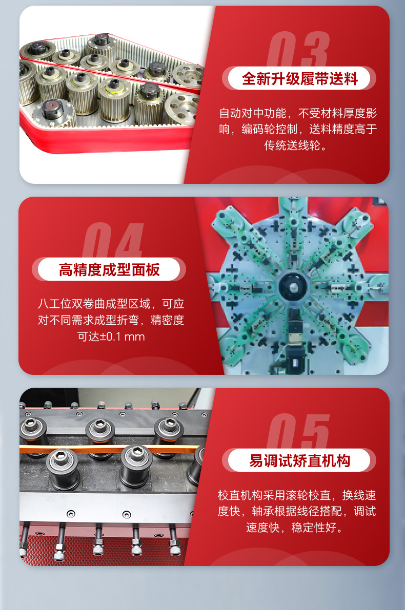 2、設備采用履帶送料,代替傳統送線輪,不同線徑無需更換送線輪。履帶送料,具備自動對中功能,不受材料厚度
