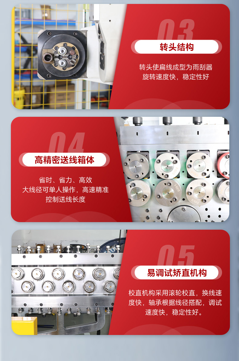 5.校直機構橫向立向11*2校直方式,校直軸承根據原材料仿形貼合校直,直線度完全符合行業產品要求。